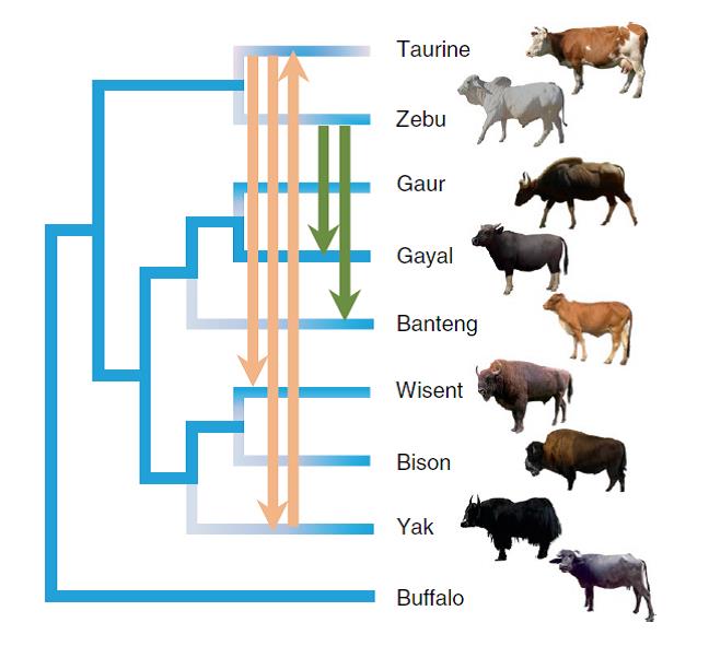 家养动物被人类成功驯化后,伴随着人类迁徙至世界各地。在这个过程中,家养动物会与当地各种野生近缘种相遇,从而发生杂交促使基因交流的发生。中国科学院昆明动物研究所研究员张亚平、吴东东课题组近期利用大规模基因组数据,阐明了基因交流在牛属动物的驯化以及环境适应中的重要作用,相关工作发表在Nature Ecology & Evolution上。
